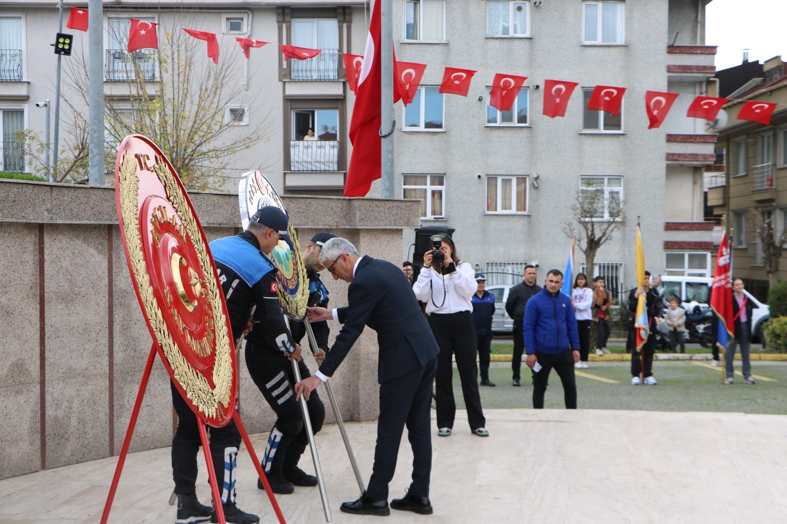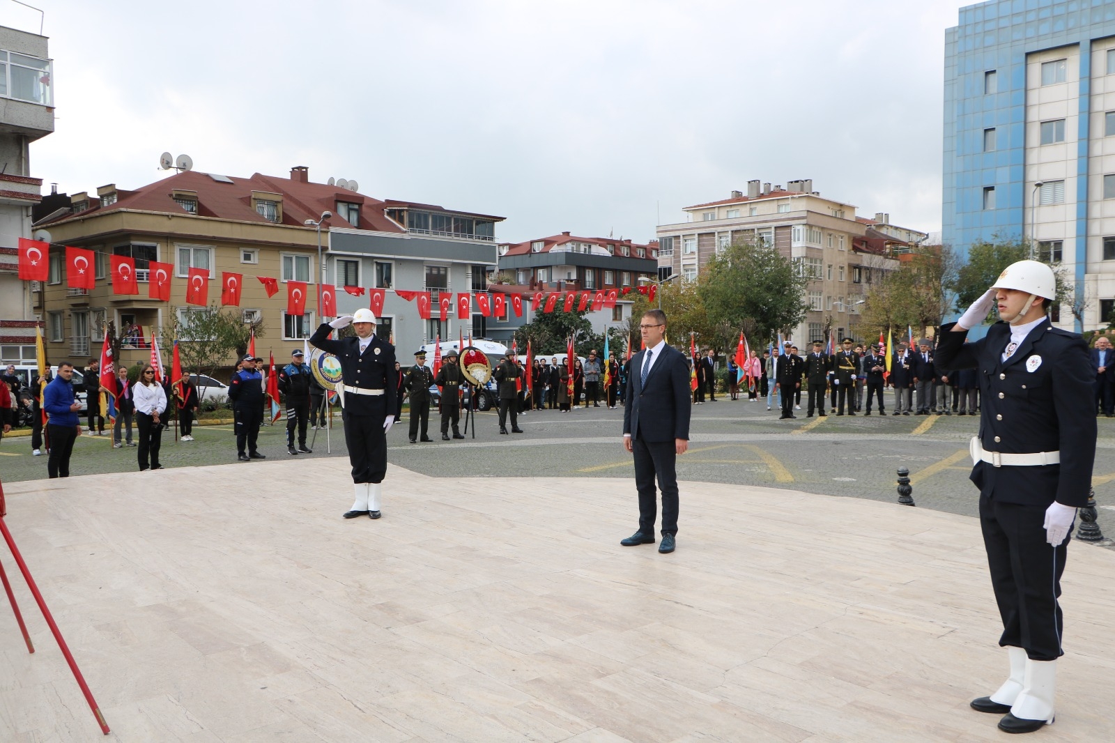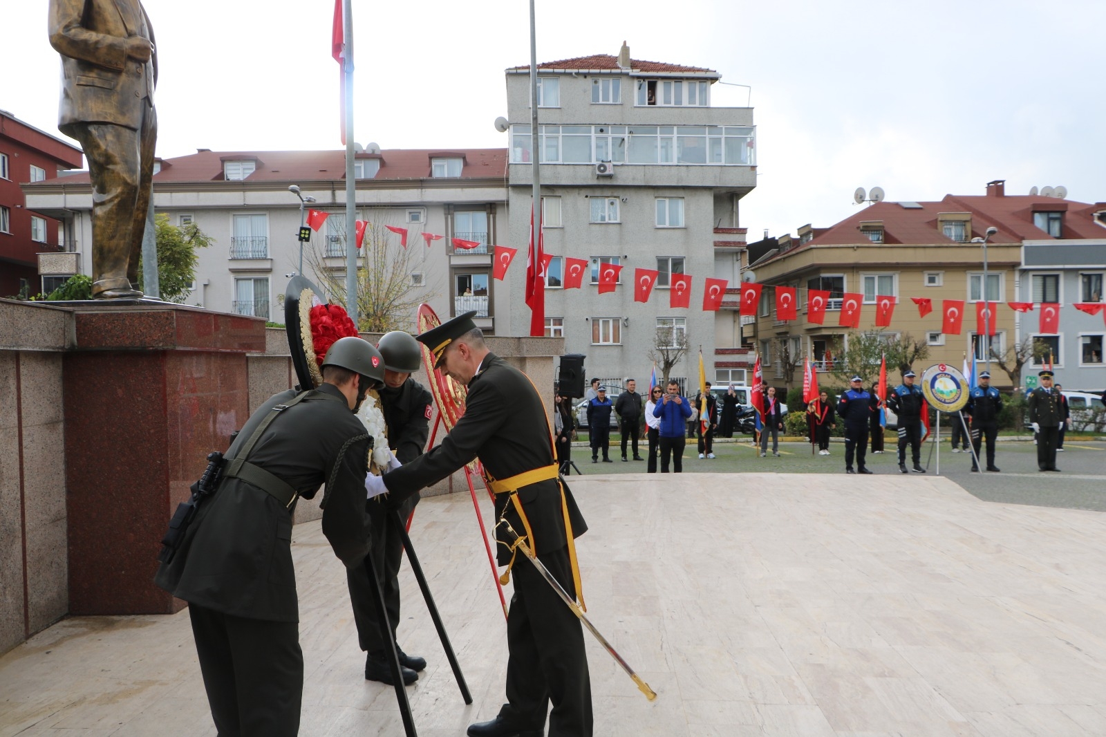 İlçemizde 29 Ekim Cumhuriyet Bayramı'nın 102. yıl dönümü kutlamaları kapsamında çelenk sunma töreni gerçekleştirildi. Tören, İlçe Kaymakamımız Sayın Dr. Orhan Burhan, Garnizon Komutanlığından Tabip Albay Sinan Mutlu ve İlçe Belediye Başkan Vekili Yüksel Can tarafından Atatürk Anıtı'na çelenk sunulmasıyla başladı. Törene; İlçe Millî Eğitim Müdürümüz Özcan Şahin, okul müdürlerimiz, kamu kurum ve kuruluş amirleri, gazilerimiz, mahalle muhtarları, siyasi parti temsilcileri, sivil toplum kuruluşları ve vatandaşlarımız katıldı.
